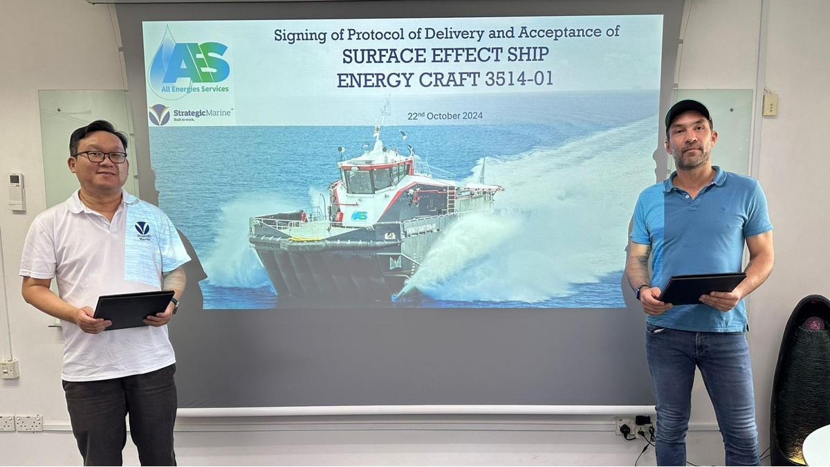 SINGAPORE, 6 January 2025 – Strategic Marine is proud to announce the signing and delivery of its first Surface Effect Ship (SES) to All Energies Services, a groundbreaking moment in the company’s advancement within the offshore oil and gas sector. The contract marks a major step in Strategic Marine’s ongoing collaboration with AIRCAT Vessels, ESNA – Espelandand Skomedal Naval Architects and AES bringing a revolutionary 35-meter SES vessel to life.