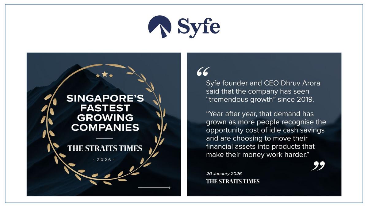 Syfe has been recognised as one of Singapore’s Fastest-Growing Companies 2026, reflecting strong momentum since its launch six years ago.
