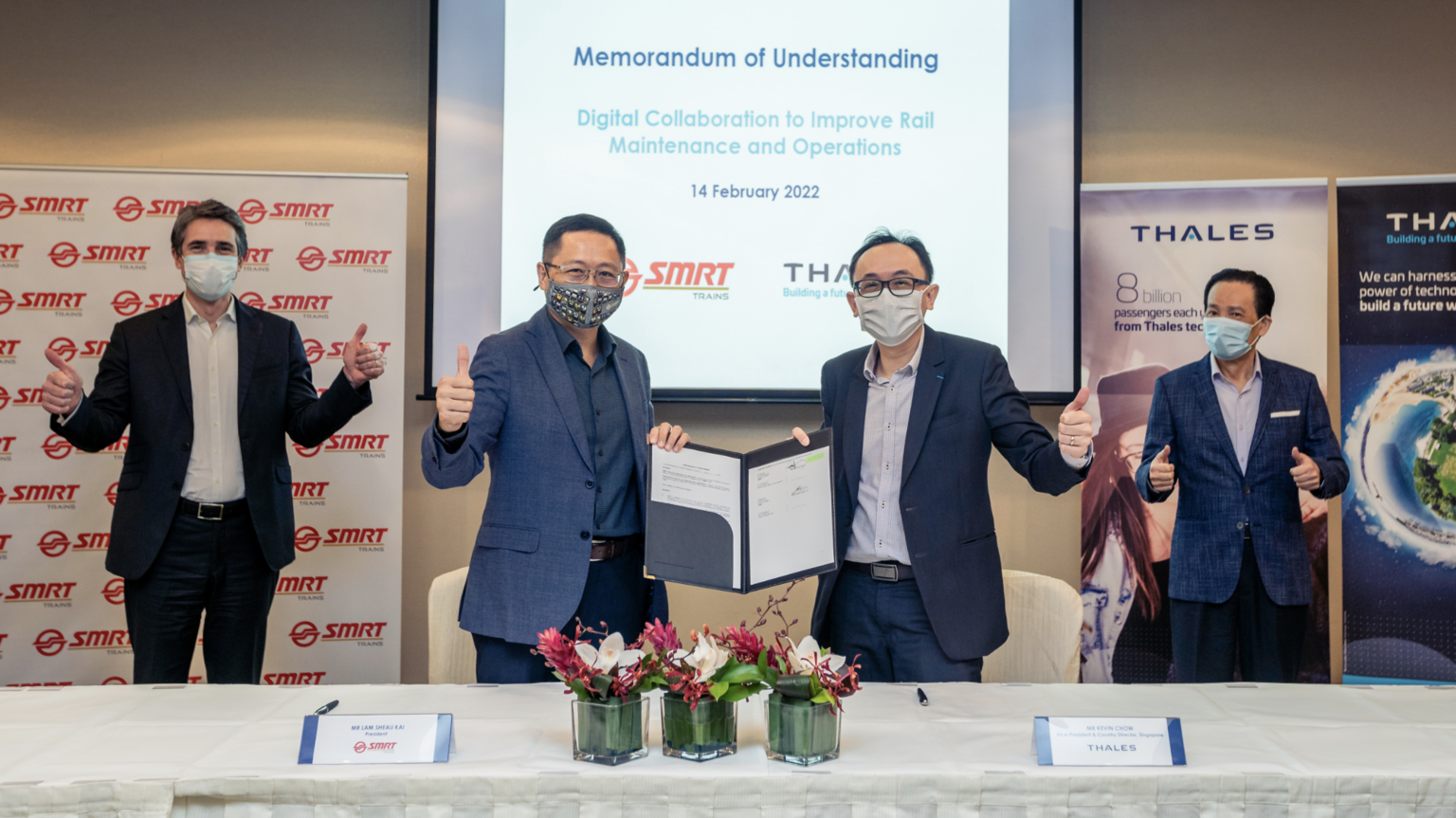 Witnessed by the Chairmen of both organisations, Mr Patrice Caine of Thales Group and Mr Seah Moon Ming of SMRT, the signing ceremony also marked the 10th anniversary of the collaboration between Thales and SMRT Trains. Their decade-long journey saw the implementation of the renowned SelTracTM CBTC signalling system for the North-South and East-West line, and has forged a close understanding and cooperation between both organisations where they worked as a team to provide reliable journeys to Singapore’s rail commuters. This renewed collaboration underscores the strong partnership between Thales and SMRT Trains, and reaffirms Thales’ position as a world-leading rail solutions provider.