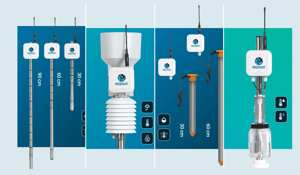 Installation is simple and considers mobility, allowing farmers to move sensors around a property to measure different conditions. Farmers can place sensors directly in the soil, attach sensors to existing structures such as fences. Although every farm differs, Weenat recommends one weather station every seven kilometers and around six tensiometers per irrigation sector for optimal insights.