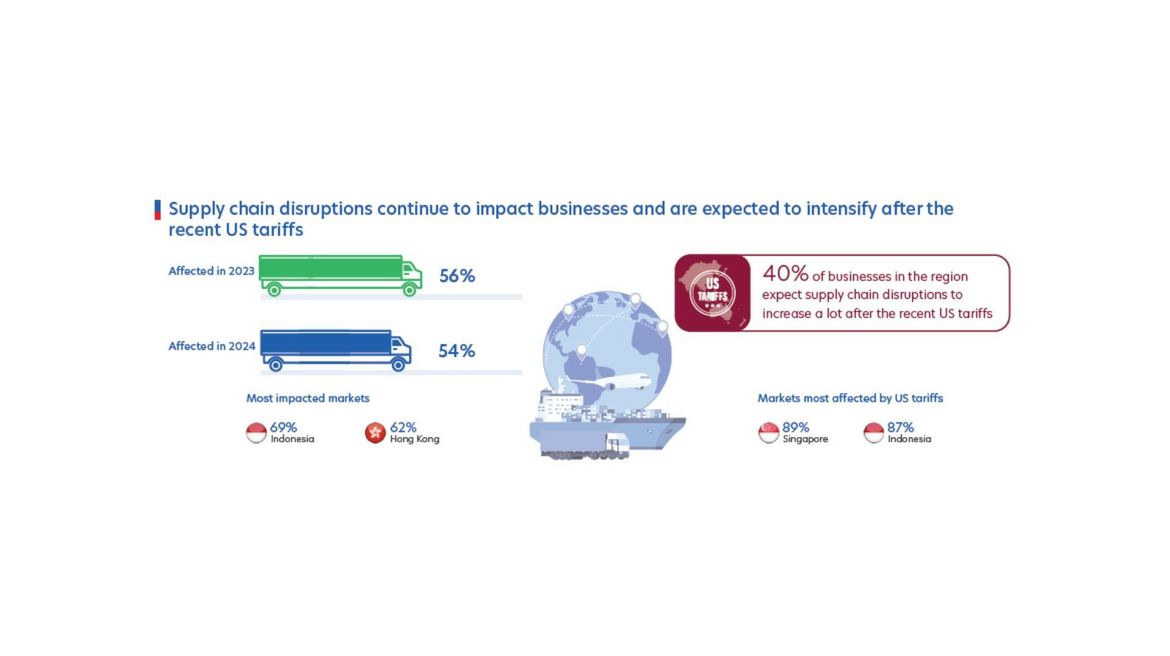 - 85 per cent of businesses in ASEAN expect greater supply chain disruptions, compared with 75 per cent in Greater China