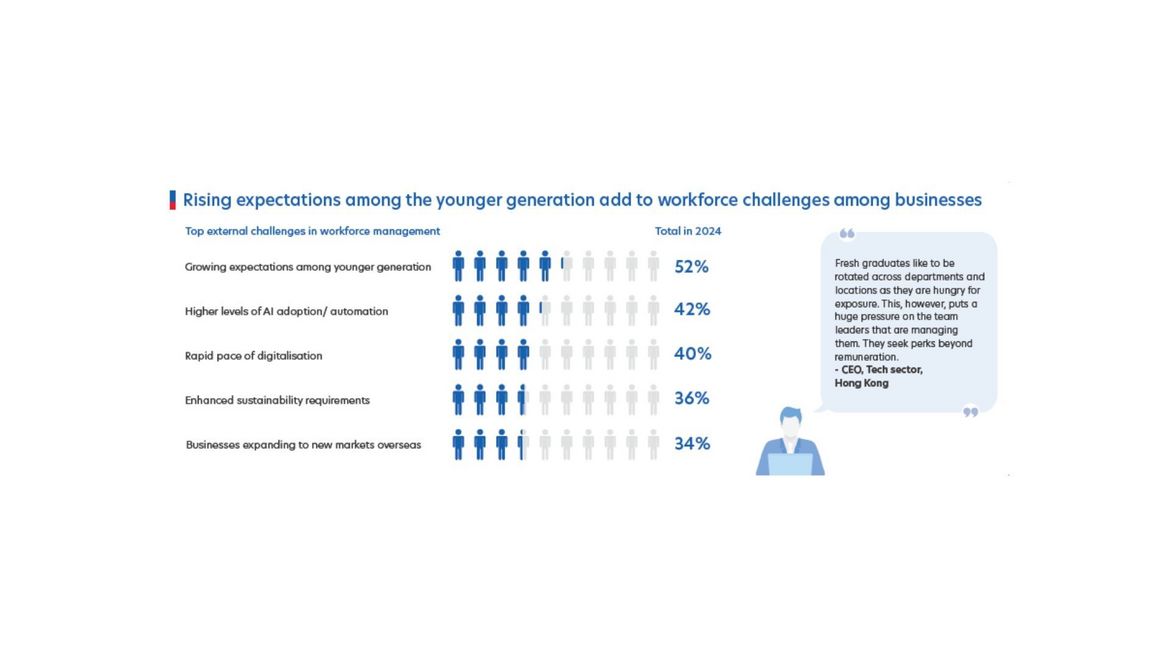 Talent attraction and retention remain a pressing challenge, as six in 10 businesses are affected by workforce or manpower-related issues.