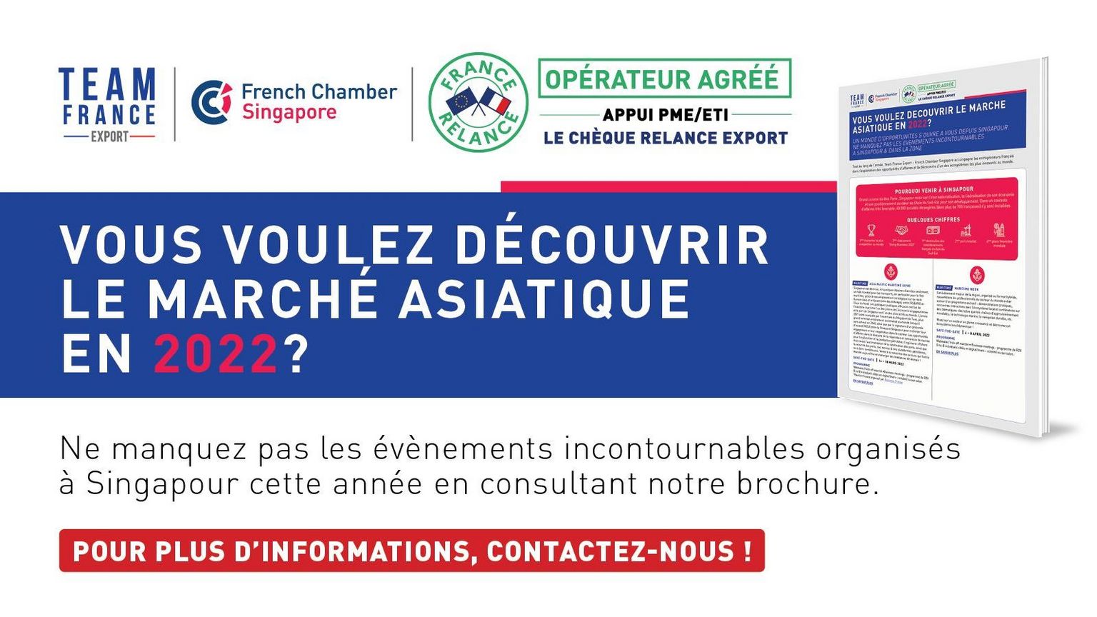 Ne manquez pas les évènements incontournables organisés à Singapour cette année en consultant notre brochure. Pour plus d’informations, contactez-nous !