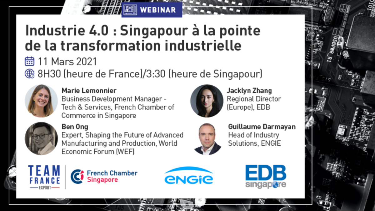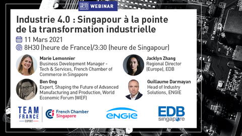 Un grand merci à nos intervenants : Jacklyn ZHANG : Regional Director (Europe) chez EDB Singapore, Ben ONG : Expert, Shaping The Future Of Advanced Manufacturing And Production chez World Economic Forum, Guillaume DARMAYAN : Head Of Industry Solutions chez Engie South East Asia et Marie LEMONNIER Expert Tech & Services de la French Chamber of Commerce in Singapore.