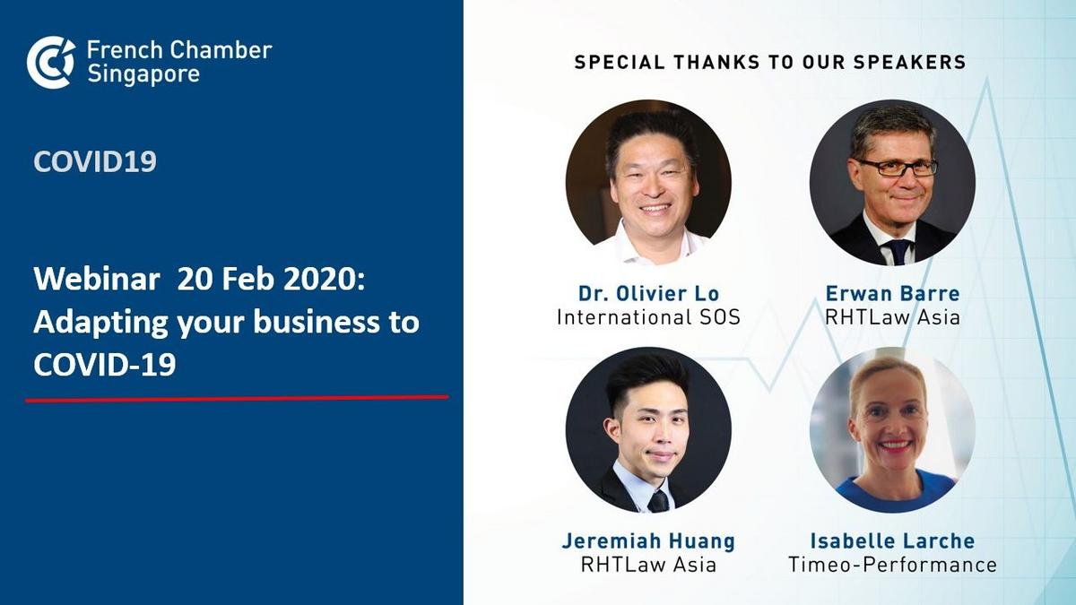 In view of the developing COVID19 (Coronavirus Disease 2019) situation, the French Chamber of Commerce in Singapore organized for its members an exceptional webinar on Thursday 20 Feb at 3pm, to provide more clarification on this subject.