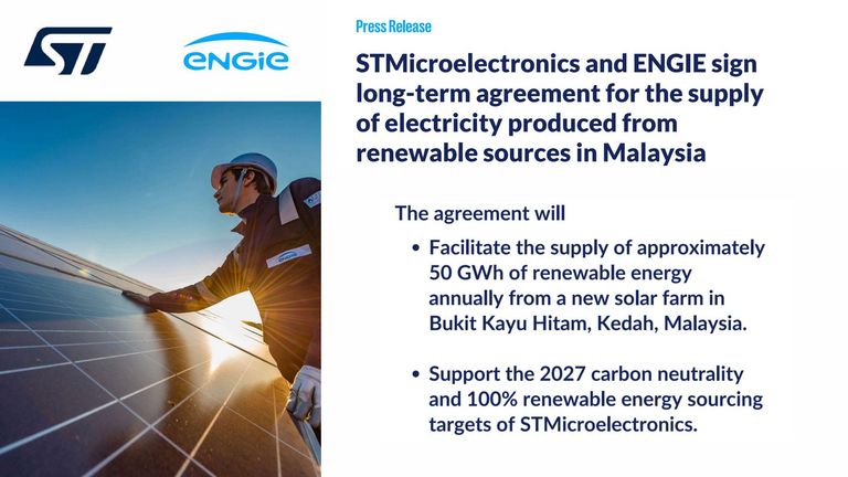 ENGIE are excited to announce a new partnership with STMicroelectronics, to supply approximately 50 GWh of renewable energy annually from our new…