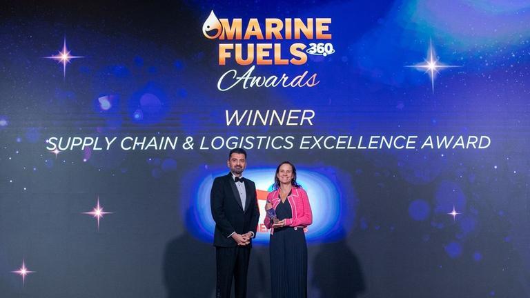Louise Tricoire, Vice President of TotalEnergies Marine Fuels, accepted the Award from Sukuma Verma, Managing Director for the Maritime & Energy…